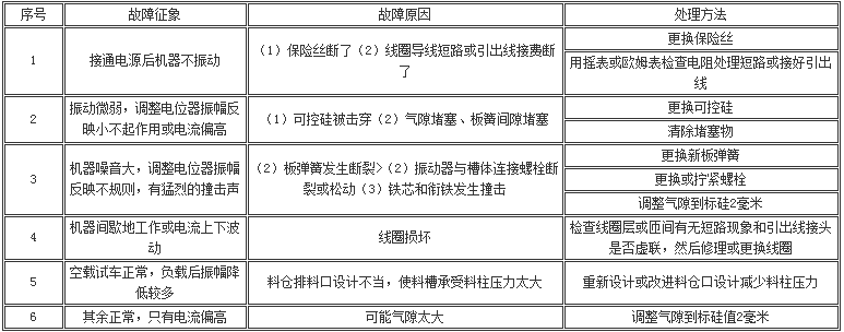 GZ系列電磁振動給料機故障處理: