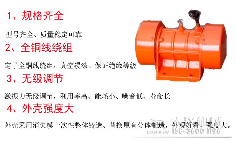 1.激振動力與功率配合得當,振動力大,機體重量輕,體積小,機械噪音低。
